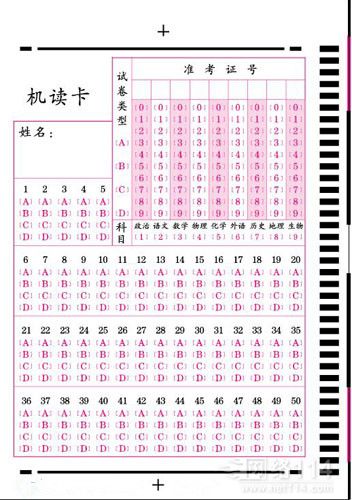 2.印刷、裁切、套印按照國家標準規定,答題卡的印刷誤差不能大于±0.1mm;裁切誤差不能大于±0.2mm。答題卡由于用了草漿紙,印刷的時候一著液體墨卡就會變形,嚴重的會錯位一個甚至兩個信息位,使整個錯位,造成嚴重的誤判。