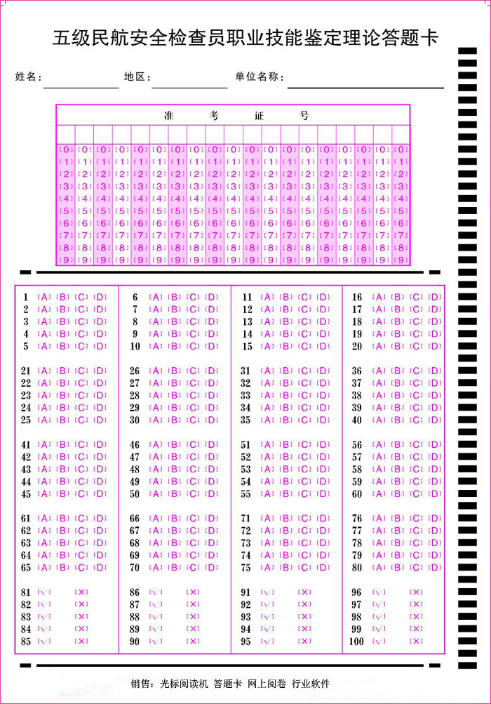 產品標題:職業技能鑒定理論答題卡
