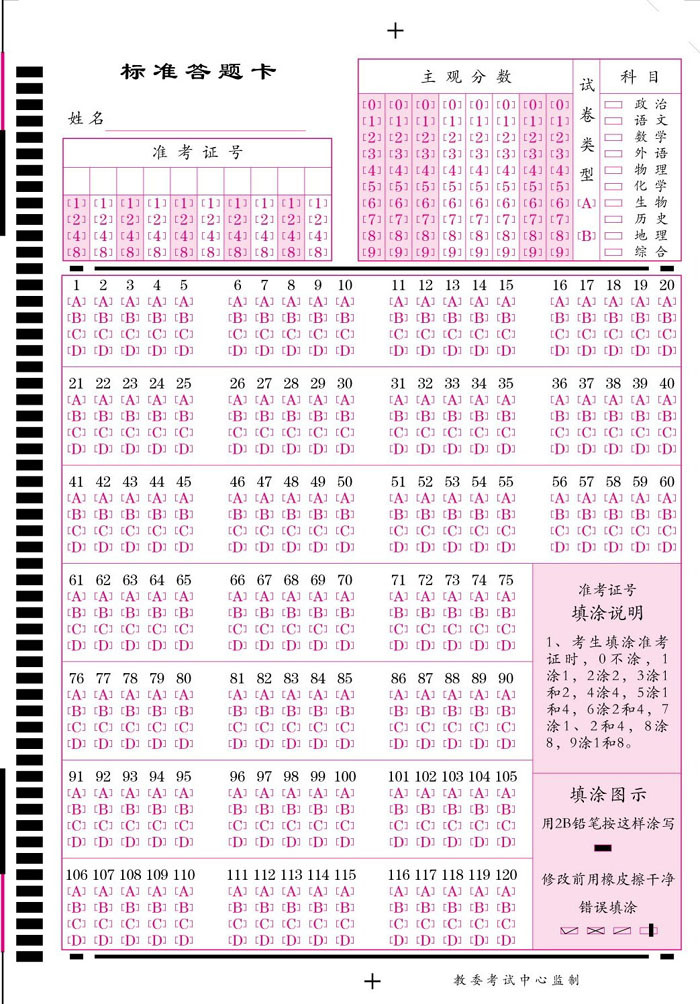 機(jī)讀卡答題卡